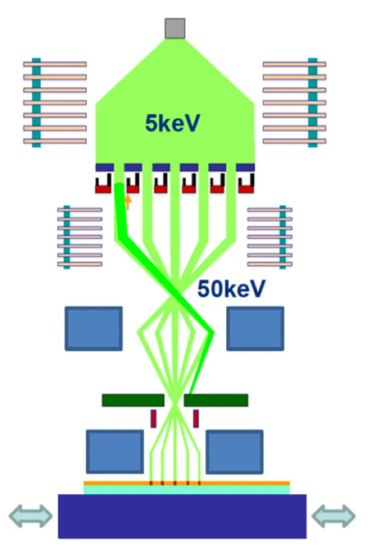 在每个节点上,芯片的特征尺寸越来越小,而缺陷更难发现。缺陷是芯片中不希望有的偏差,会影响良率和性能。新的检查系统有望解决这些挑战,但它们也比以前的工具昂贵,芯片制造商可能需要购买它们的混合物。传统的前道量检测一般采用 多用光检测 和 单子束相结合 的方式,但光检测无法适用于7nm以下的先进制程,电子束检测效率极其低。 ASML近期推出多光束检测方案,能够同时产生、控制九道电子束,将产能提升600%,对先进制程的良率提升十分重要。