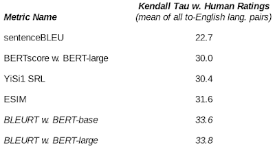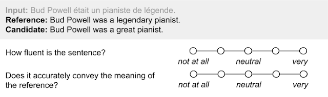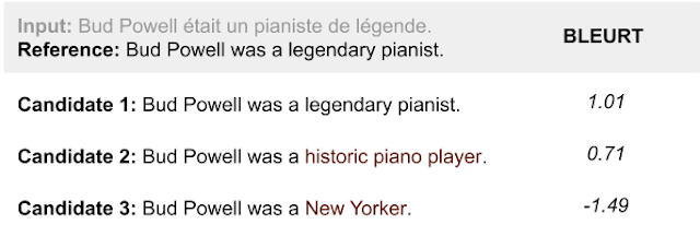 在“BLEURT:学习稳健的文本生成指标”(BLEURT: Learning Robust Metrics for Text Generation)(已于 ACL 2020 期间公布)一文中,我们提出了一种可以评分的全新自动化指标,该方法不仅可靠,还可达到出色的质量水平,其评估结果更接近人工标注的效果。BLEURT (Bilingual Evaluation Understudy with Representations from Transformers) 基于迁移学习的近期研究成果之上构建,可以捕获句子转述等广泛使用的语言特征。您可以在 Github 上获取该指标的实现代码细节。