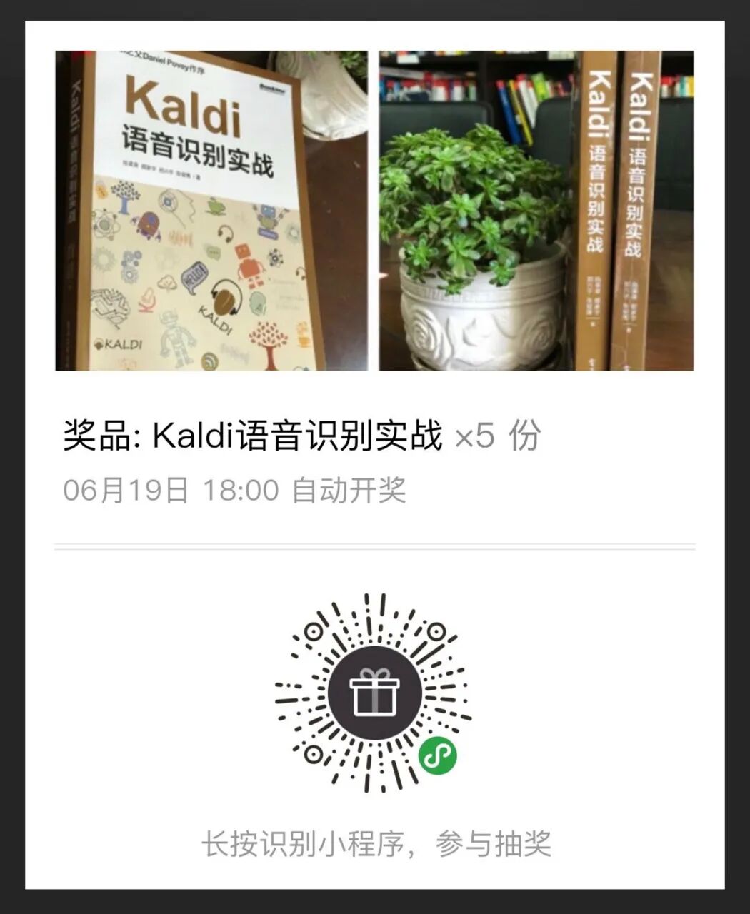 AI 前线联合博文视点Broadview为粉丝送出《Kaldi语音识别实战》纸质书籍 5 本!长按识别下图小程序,参与抽奖活动,由小程序随机抽出 5 位,每人赠送一本书。开奖时间:6 月 19 日(周五)18:00,获奖者每人获得一本。另附购买地址,请戳「阅读原文」
