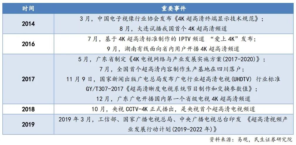 工信部等发布的超高清《行动计划》更已提出,中国超高清视频的年制作能力,2022年将达到3万小时。