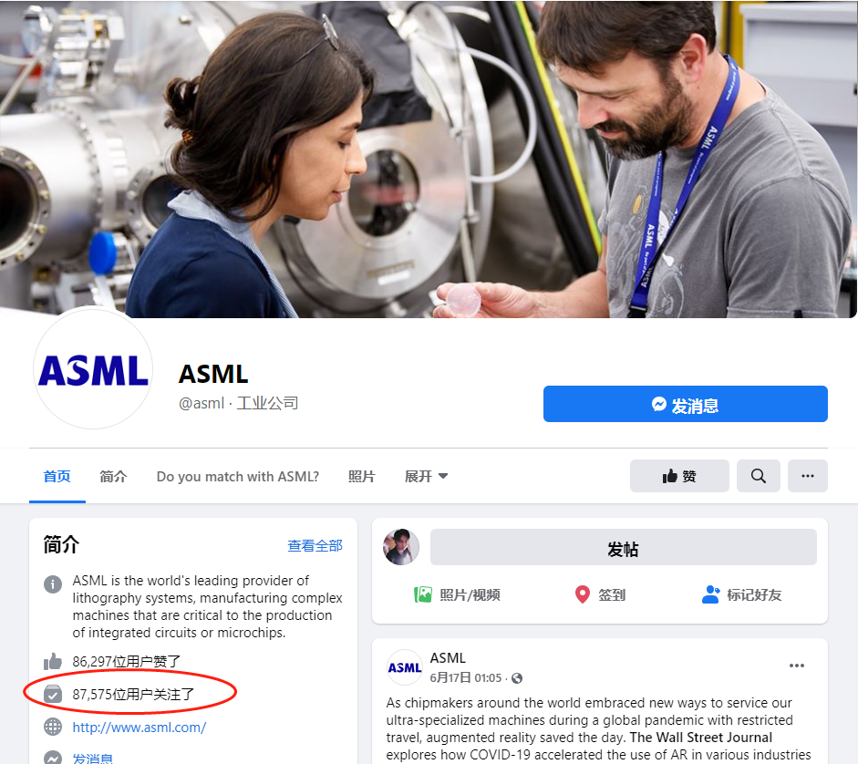 ▲ASML公司facebook官号
