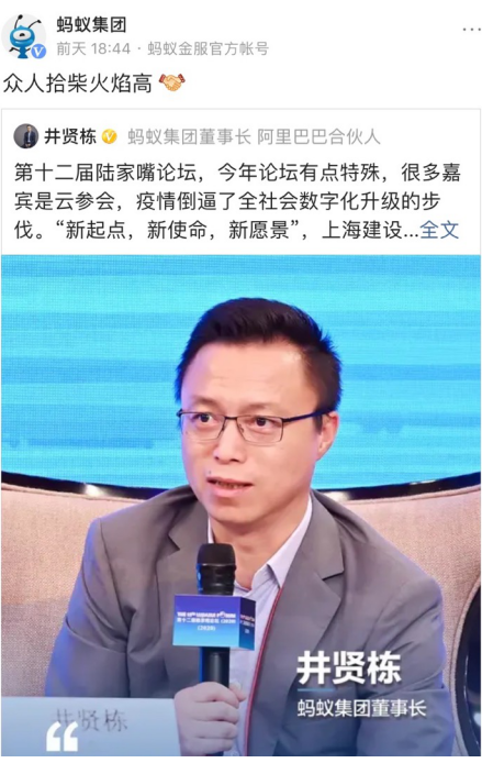 这家公司启用新简称的动作已经持续月余。5月起,“蚂蚁集团”取代了“蚂蚁金服”在其对外公开的信息、新闻稿中频繁出现,井贤栋、胡晓明的对外title逐渐变成“蚂蚁集团董事长”、“蚂蚁集团CEO”。近日,支付宝App开机屏、原蚂蚁金服微头条等渠道也逐渐使用新名字“蚂蚁集团”。