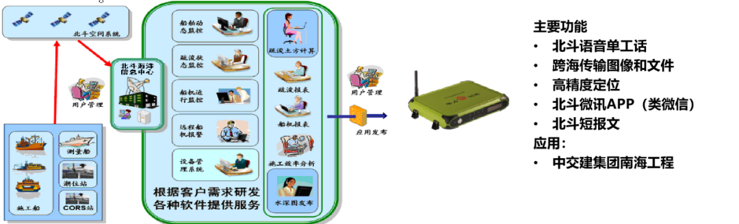 通过北斗短报文通信特色功能的创新应用,基于北斗RDSS链路的北斗集群数据通信终端,采用极低速率语音编解码算法、高压缩比图像算法与北斗RDSS信道相结合,实现全天候、全地域的文件、图片、语音等信息的准实时收发的北斗数据通信、定位及指挥等功能。相关技术和应用获得“国家技术发明二等奖”。