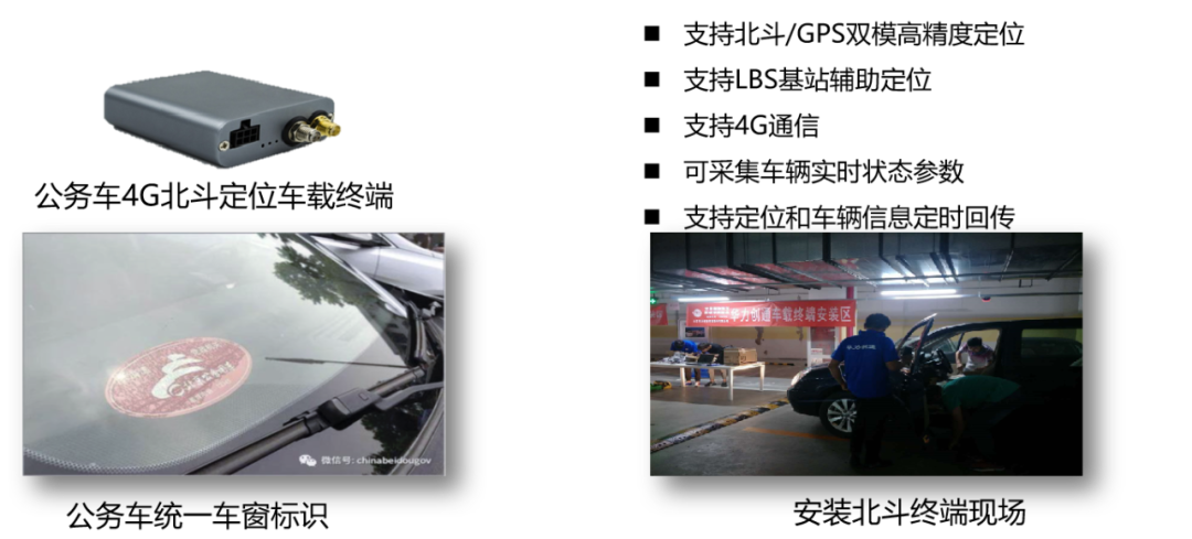 北斗定位车载终端,将北斗定位与地面通信网络相结合,集全天候定位、跟踪、数据采集功能于一体,其具有定位精度高、实时位置上报、体积小巧、简单易用、操作方便等特点。北京公务用车信息化管理北斗应用项目中,利用北斗定位技术,实现车辆的实时定位,并通过4G网络将车辆信息发送到车辆信息管理平台,实现车辆的实时监控。已批量装配北京市公务车辆。