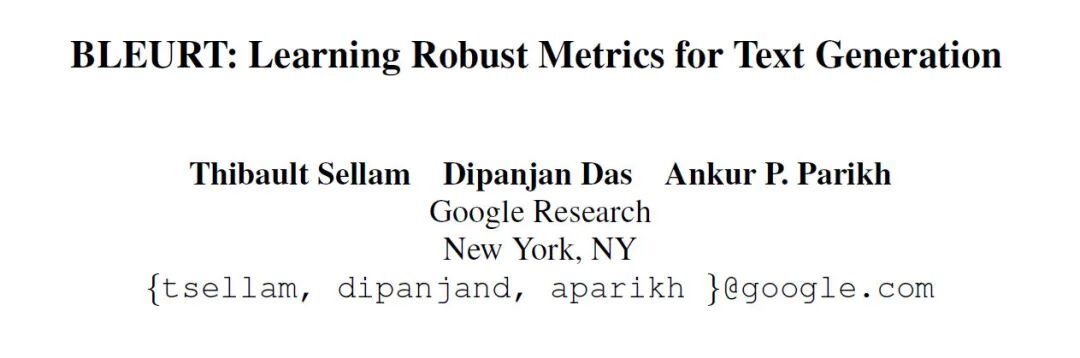 思路是非常简单的:即对两个生成句和参考句(word piece进行tokenize)分别用bert提取特征,然后对2个句子的每一个词分别计算内积,可以得到一个相似性矩阵。基于这个矩阵,我们可以分别对参考句和生成句做一个最大相似性得分的累加然后归一化,得到bertscore的precision,recall和F1: a、Importance Weighting 还可以考虑给不同的词以权重。作者使用idf函数,即给定M个参考句,词w的idf为: b、Baseline Rescaling 为了保证一个可读性(即不好的生成值为0,好的生成值为1)需要做一个Rescaling。作者的做法是随机的组合候选句和参考句(we create 1M candidate-reference pairs by grouping two random sentences.)从而计算一个b的平均值。b会被用于以下的式子: 若如此做,R_BERT会被映射到0和1(typically),precision和F1也可以做相似的操作。 c、实验设计  有大量丰富的实验验证 鲁棒性和有效性。(43页的paper,模型只讲了半页) 拓展阅读 :BLEURT BLEURT: Learning Robust Metrics for Text Generation. ACL 2020
