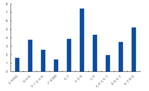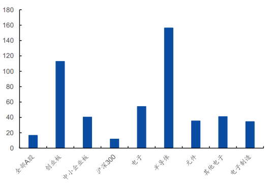 受市场关注、盈利能力强的半导体板块处于较高的估值,无论是PE还是PB均处于各行业、主流指数估值的最高水平。