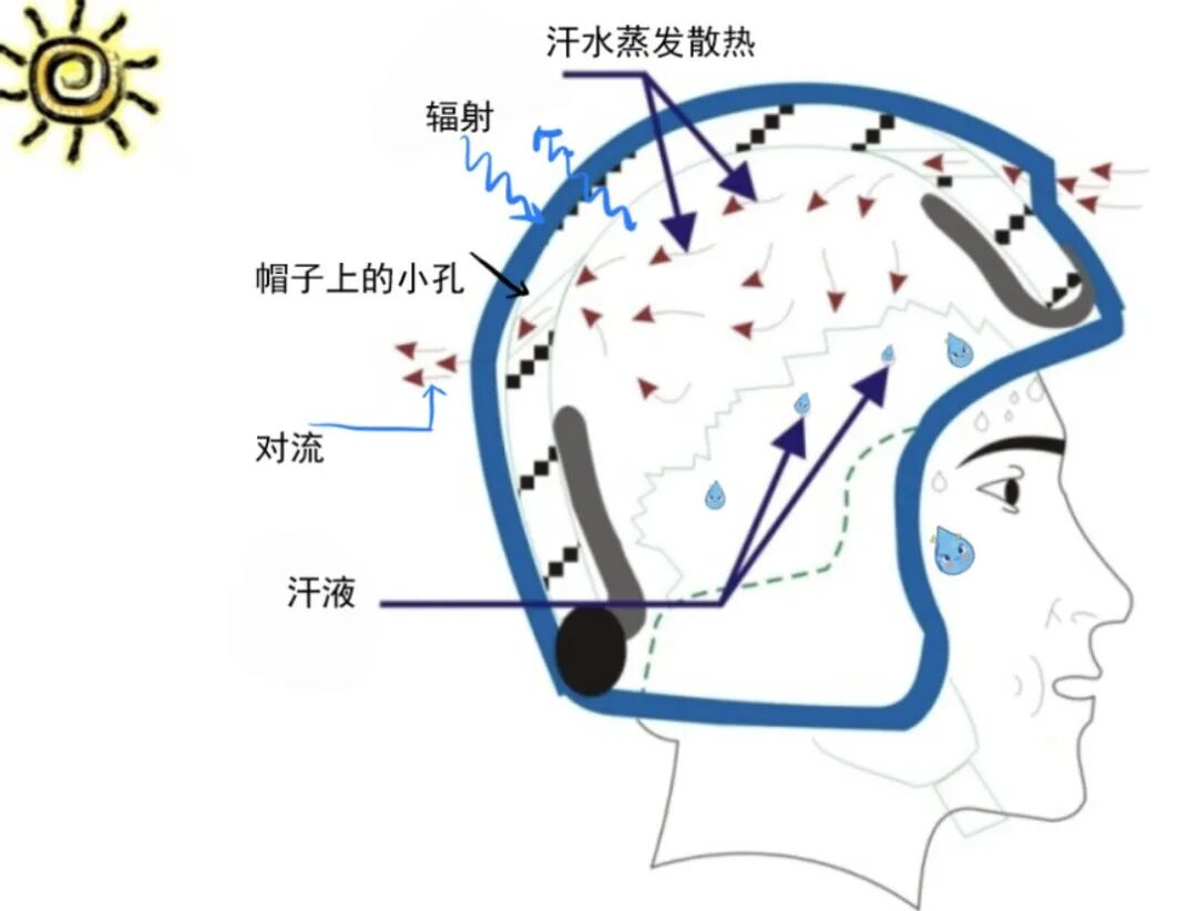 尤其在极为炎热的天气里,环境温度高于皮肤温度时,人体实际上会通过对流、传导、辐射获得热量。这时候,蒸发散热成为人体唯一的散热方式。如果头部蒸发散热受到阻碍,会让人感觉又闷又热,大有酷暑蒸桑拿的体验感。