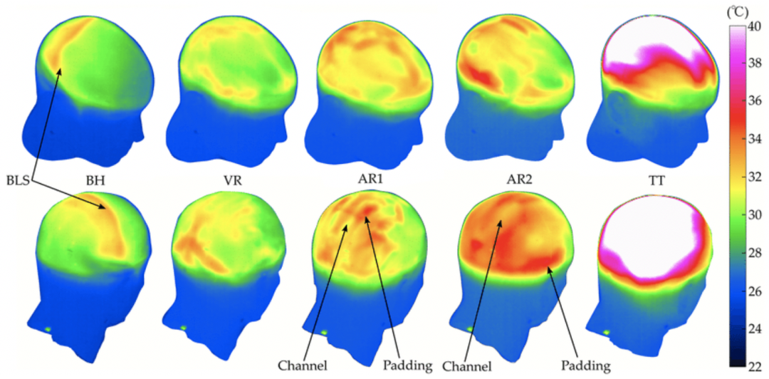 一些研究使用出汗的头部模型,对戴头盔与不带头盔的头部模型进行了温度测量。