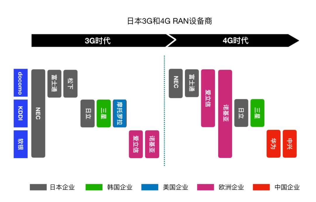 (日本三大运营商3G和4G时代的RAN设备供应商)