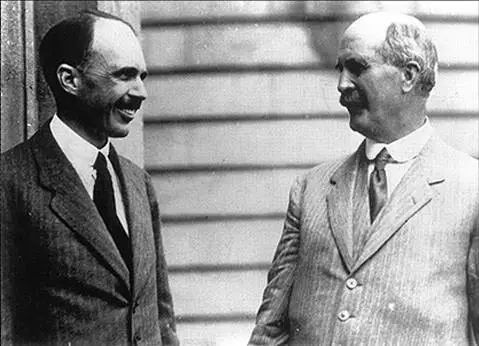 照片中的康普顿与布拉格父子,他们是现代固体物理学的奠基人之一。布拉格父子由于在使用X射线研究晶体原子和分子结构方面所作出的贡献,他们俩一起获得1915年的诺贝尔物理学奖。