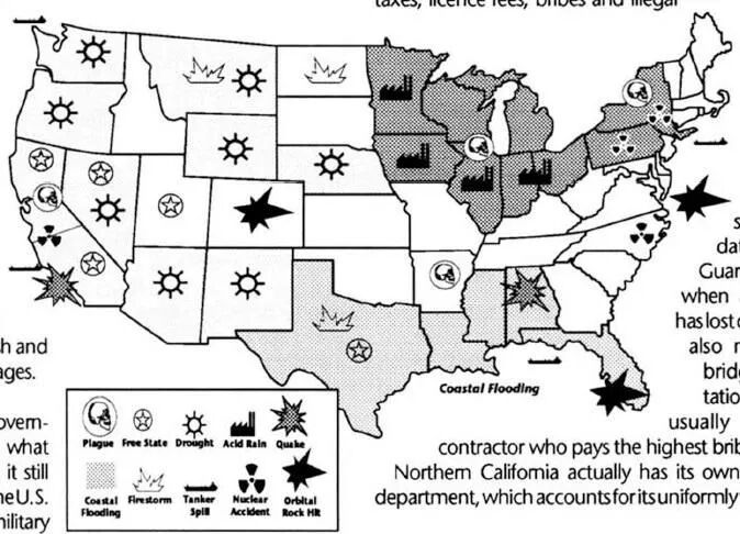 游戏世界里,全球变暖已经导致北极融化和海底可燃冰挥发,由于各种工厂无节制的排放毒物垃圾,五大湖已经变成剧毒池,工厂污染的沙地和大气则带来剧毒沙尘暴、剧毒雾霾和有毒酸雨。东海岸的两个核电站公司破产,核废料融进地下并污染地下水。海洋污染导致包括