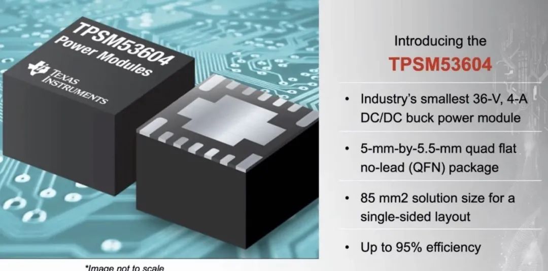 而另一款TPSM53604,它是36V、4A的电流模块,这个设计可以让本身产品和整个设计面积缩小30%,它有更小更简单的电源。在工业领域应用中,有效的传热使操作环境温度高达105%,它可以实现高效散热。