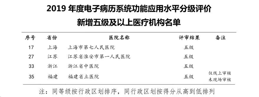 近日,国家卫生健康委医院管理研究所发布2019年度电子病历功能应用水平分级评价新增五级及以上医疗机构名单,卫宁健康同时助力多家三级甲等医院——上海市第七人民医院、江苏省淮安市第一人民医院、浙江省中医院、福建省立医院等,顺利通过电子病历五级评审。