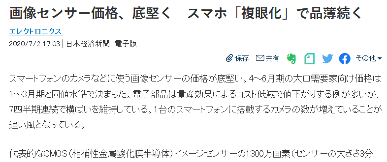 据日经新闻报道,尽管上半年受疫情影响导致全球经济停滞,手机销量锐减,连带CMOS图像传感器也受到影响。不过,由于市场主流手机厂商推出的“多摄化”机型相继量产,让CMOS图像传感器在让CMOS图像传感器的供不应求甚至缺货现象在疫情期间得以持续。