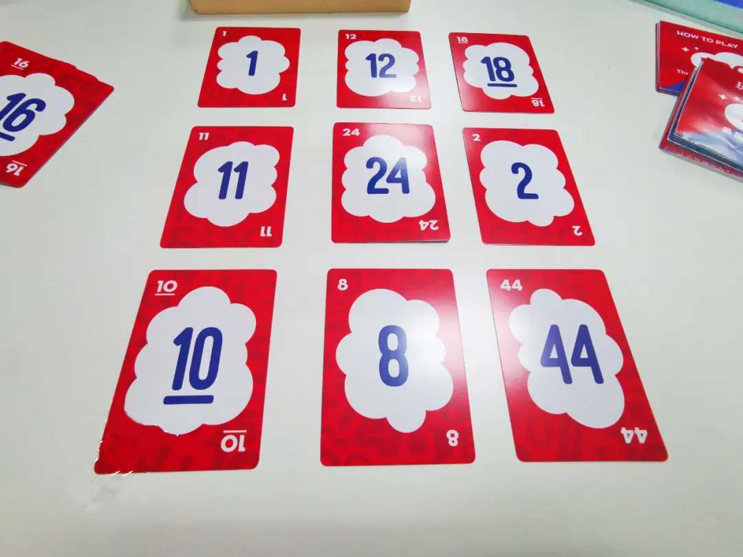 当有玩家发现等式、喊出结果、赢走卡牌后,需要继续发牌,让桌面的数字牌始终保持有9张。发完数字牌以后,玩家们继续寻找等式→喊出结果→证明对错...重复以上步骤,直到所有卡牌用完,并再也找不到等式为止,游戏随即结束。最后的获胜条件是:当用完所有卡牌时,手上积累卡牌数量最多的玩家获胜。为了获得更多卡牌,孩子必须全神贯注。这样,经过一次次的比拼下来,可以反复训练孩子的数感,并不断提升运算速度和准确率。