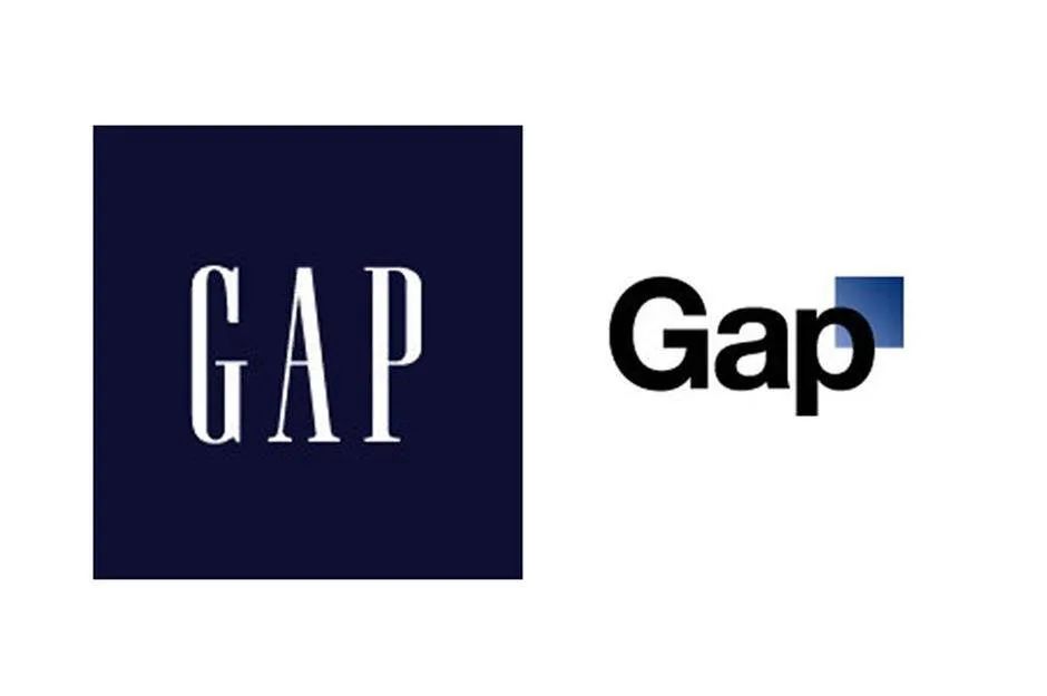在2008年金融危机之后,GAP的销售业绩就持续下滑。到2010年,GAP的股价已经跌了差不多40%,因此它必须采取一些措施来提升自己。董事会一致认为,解决问题最好的方法就是重塑品牌,因此他们决定改变GAP的Logo。新的Logo在圣诞节(零售界最繁忙的季节)前后推出,GAP想让顾客们眼前一亮,因此在推出之前没有以任何形式提醒消费者。GAP的Logo变化,右边为圣诞节前后推出的新Logo