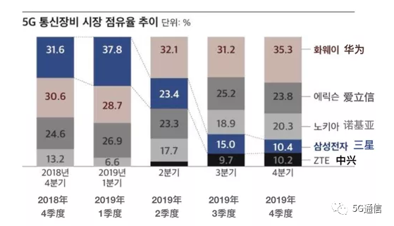 与2019年第四季度的数据相比,华为市场份额增长了0.4%,爱立信增长了0.8%,诺基亚大幅下滑了4.5%,中兴增长了3%,三星则下滑了1.2%。虽然今年外界环境更加严峻,但华为、中兴等中国电信设备厂商市场份额主体上仍保持了稳步增长的态势,而根据这两家之前公布的情况看:截至2020年2月,华为已获得91个5G商用合同,5G Massive MIMO AAU(Active Antenna Unit)模块全球发货超过60万个;中兴已在全球获得46个5G商用合同,与全球60多家运营商开展5G合作,5G基站全球发货已经超过5万个。截至2019年年底,中兴的5G基站出货超过了10万个。Dell'Oro发布的报告中也提到,华为和中兴5G电信市场份额持续增长也得益于中国5G投资建设的加速。
