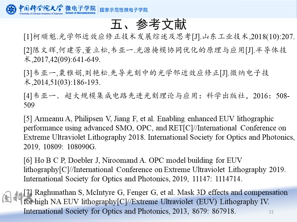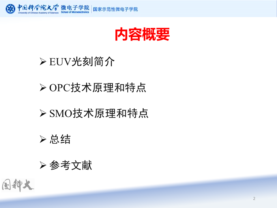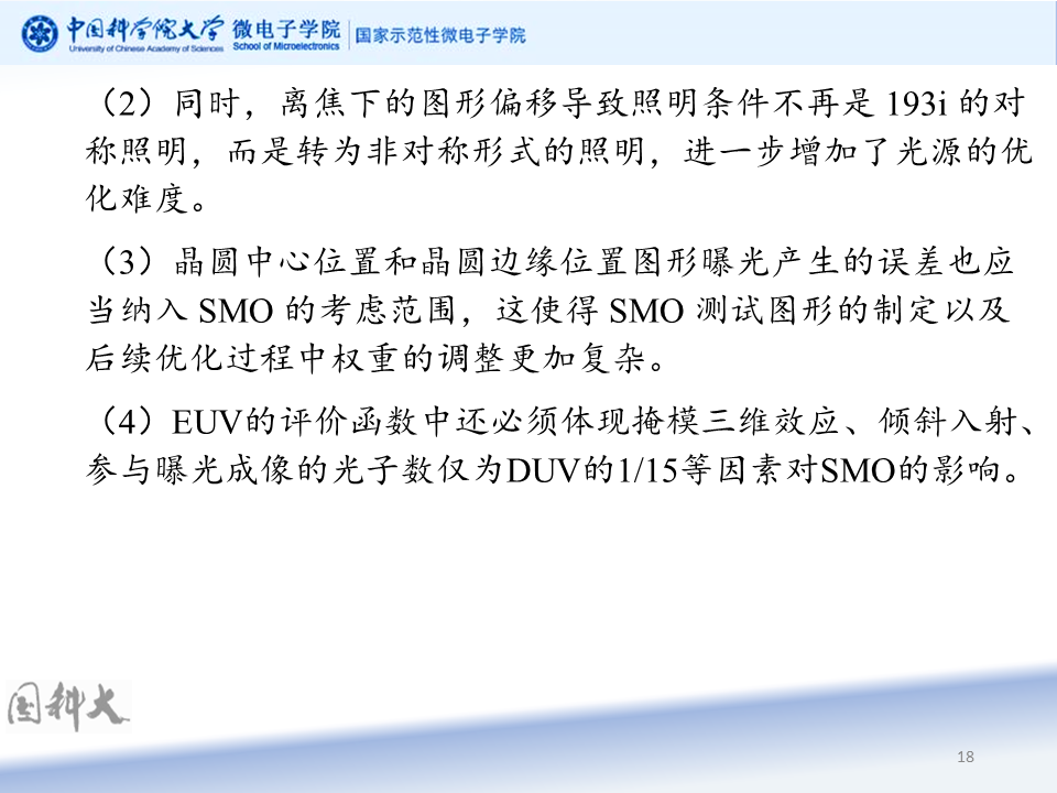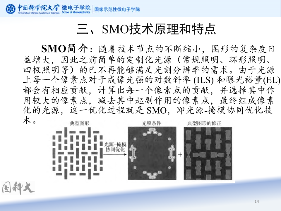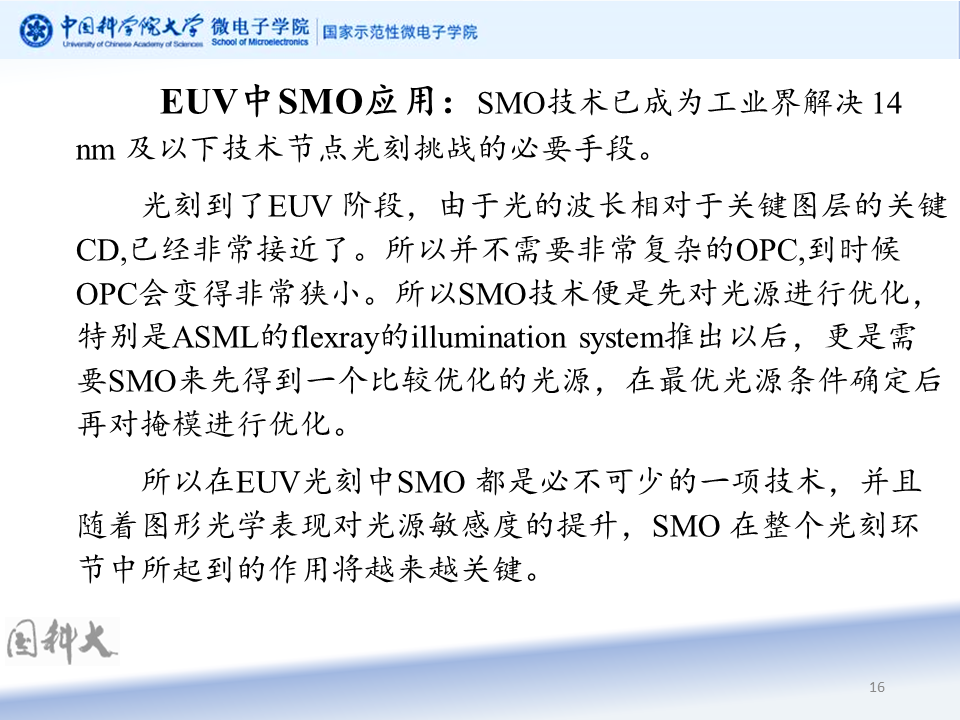 编者按:中国科学院大学微电子学院是国家首批支持建设的示范性微电子学院。为了提高学生对先进光刻技术的理解,本学期微电子学院开设了《集成电路先进光刻技术与版图设计优化》研讨课。在授课过程中,除教师系统地讲授外,学生还就感兴趣的课题做深入调研。师生共同讨论调研报告,实现教学互动。调研的内容涉及光刻工艺、光刻成像理论、SMO、OPC和DTCO技术。考虑到这些内容也是目前业界关注的实用技术,征得教师和学生的同意,本公众号将陆续展示一些学生的调研结果。这些报告还很初步,甚至有少许谬误之处,请业界专家批评指正。