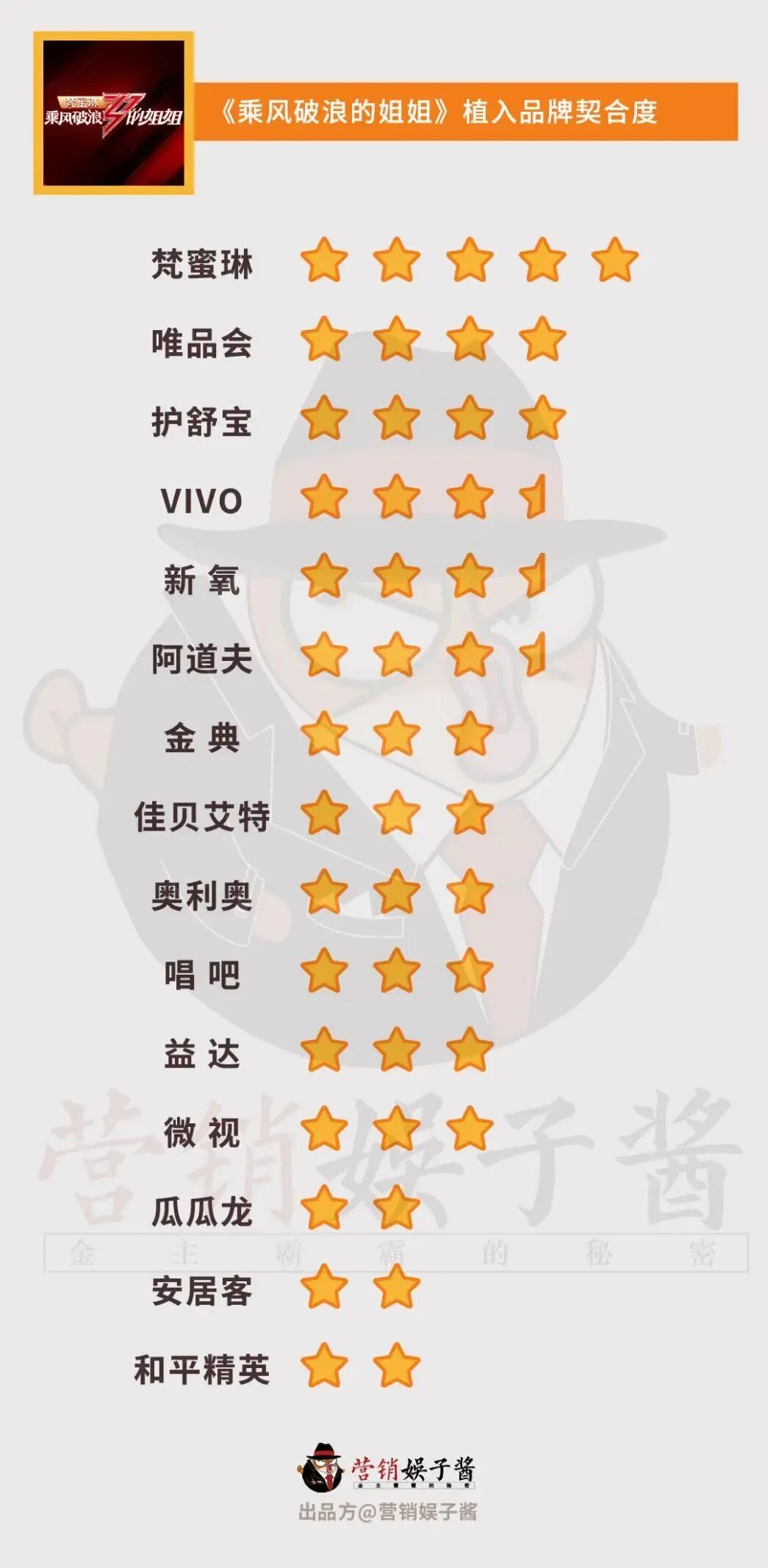 事实也证明权益的多少并不意味着品牌一定能找到合适的露出机会,关键在于品牌调性与节目的契合度。观察下来,选择《浪姐》的品牌或多或少会存在一定的顾虑。