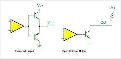输出端相当于三极管的集电极,要得到高电平状态需要上拉电阻才行。适合于做电流型的驱动,其吸收电流的能力相对强(一般20mA以内)。开漏形式的电路有以下几个特点:1、利用外部电路的驱动能力,减少IC内部的驱动。当IC内部MOSFET导通时,驱动电流是从外部的VCC流经上拉电阻、MOSFET到GND。IC内部仅需很小的栅极驱动电流。2、一般来说,开漏是用来连接不同电平的器件,匹配电平用的,因为开漏引脚不连接外部的上拉电阻时,只能输出低电平,如果需要同时具备输出高电平的功能,则需要接上拉电阻,很好的一个优点是通过改变上拉电源的电压,便可以改变传输电平。比如加上上拉电阻就可以提供TTL/CMOS电平输出等。(上拉电阻的阻值决定了逻辑电平转换的速度。阻值越大,速度越低功耗越小,所以负载电阻的选择要兼顾功耗和速度。)3、开漏输出提供了灵活的输出方式,但是也有其弱点,就是带来上升沿的延时。因为上升沿是通过外接上拉无源电阻对负载充电,所以当电阻选择小时延时就小,但功耗大;反之延时大功耗小。所以如果对延时有要求,则建议用下降沿输出。4、可以将多个开漏输出连接到一条线上。通过一只上拉电阻,在不增加任何器件的情况下,形成“与逻辑”关系,即“线与”。可以简单的理解为:在所有引脚连在一起时,外接一上拉电阻,如果有一个引脚输出为逻辑0,相当于接地,与之并联的回路“相当于被一根导线短路”,所以外电路逻辑电平便为0,只有都为高电平时,与的结果才为逻辑1。关于推挽输出和开漏输出,最后用一幅最简单的图形来概括:该图中左边的便是推挽输出模式,其中比较器输出高电平时下面的PNP三极管截止,而上面NPN三极管导通,输出电平VS+;当比较器输出低电平时则恰恰相反,PNP三极管导通,输出和地相连,为低电平。右边的则可以理解为开漏输出形式,需要接上拉。