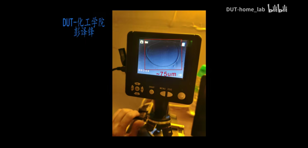 援引媒体“大数据文摘”的报道:一位大连理工大学化工学院的Up主彭译锋,竟然凭着一张图纸给成功在家里搭建了纳米级光刻机,还成功光刻出~75微米(75000纳米)的孔径。