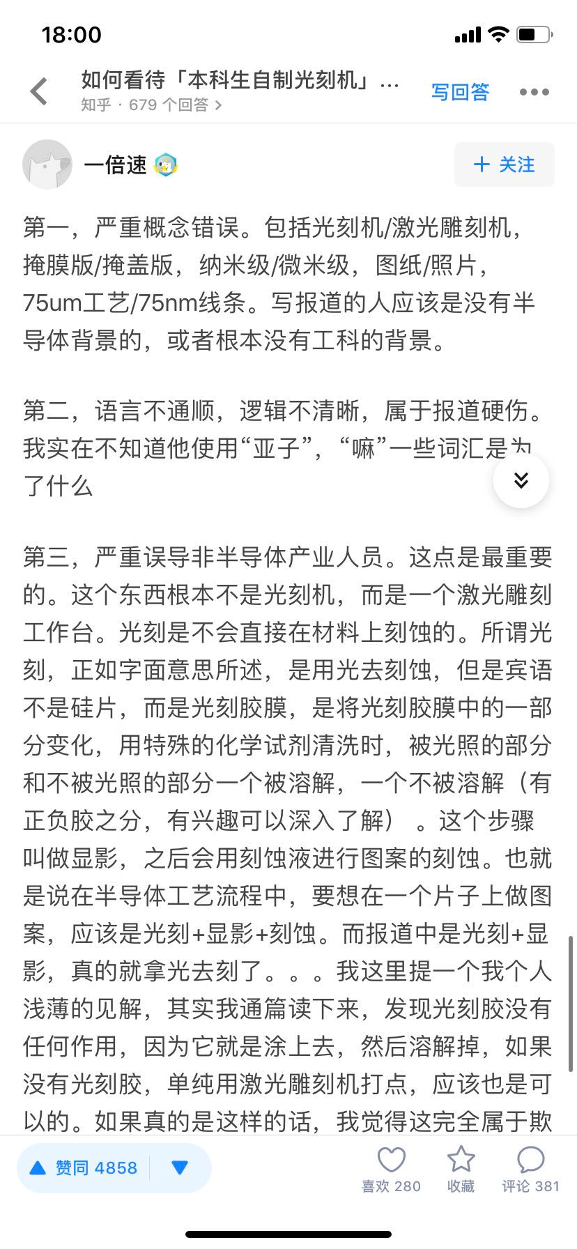4.知乎话题《如何看待‘本科生自制光刻机’这一报道?有哪些意义和局限性》
