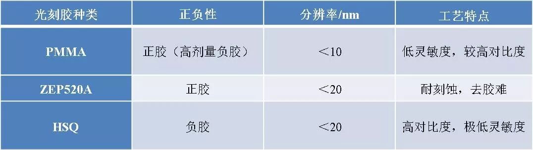 电子束光刻的主要原理是利用高速的电子打在光刻胶表面,使光刻胶的化学性质改变。在电子束光刻中电子的产生方式有两种,一种是热发射,另一种是场发射。热发射是通过对阴极材料高温加热,使电子获得足够的能量从阴极中逸出;场发射是将阴极置于高强度电场中,利用电场对电子的强作用力使电子脱离原子核的束缚。直写式电子束的曝光原理是将聚焦的电子束斑直接打在光刻胶的表面,加工中不需要成本高昂的掩模版和昂贵的投影光学系统,其加工方式也更为灵活,适合小批量器件的光刻,在实际中应用更为广泛。