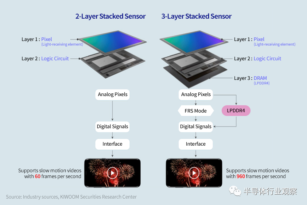 截至2018年,主要行业对CIS的需求份额显示,移动行业占主导地位,达到了无与伦比的68%,其次是计算(9%),消费者(8%),安全性(6%),汽车(5%),工业(4%)。未来,这种需求预计将主要在移动,汽车和工业领域增长,而市场规模(2018年价值约137亿美元)预计到2022年将增加到190亿美元。随着装备到智能手机的相机数量的增加,移动领域目前所占份额最大,预计将显示出最大的增长。在双摄像头之后,三摄像头开始在智能手机背面采用。考虑到正面的摄像头数量,现在随着主要的智能手机制造商追求新的和多样化的摄像头功能(例如光学变焦)以在极端饱和的市场中脱颖而出,一台智能手机总共可以配备五个摄像头。相机的数量有望增加,以提供更多的功能,例如增强现实(AR),3D同时定位和映射(SLAM 1)和实时眼睛跟踪。实际上,智能手机中配备的CIS数量预计将从2018年的36亿急剧增加到2023年的54亿。最近,随着全屏显示的采用率的提高,前置摄像头模块变得越来越小。为了实现如此小的尺寸,必须集成由彩色滤光片,光电二极管和放大器组成的CIS。后相机模块有望在增加像素数量的同时朝着采用特殊功能的方向发展。特别地,近来像素密度已经快速增加,为此,必须先改善CIS的像素集成。因此,对于前后智能手机相机而言,CIS集成度的提高变得越来越重要。除此之外,现在将融合CIS,ISP和DRAM的封装技术引入超高速相机,这对于中长期生产DRAM和CIS的公司来说,将是一个有益的变革。最新的3层(CIS + ISP + DRAM)堆叠图像传感器对于CIS,随着焦点从8英寸晶圆转移,人们对12英寸晶圆的需求越来越大。另外,随着像素数量增加到超过4000万,该工艺开始从90nm迁移到32nm或更小。特别地,CIS的制造工艺与DRAM的制造工艺非常相似,并且DRAM 的沟槽技术被应用于高像素产品的工艺。因此,随着时间的流逝,DRAM制造商很有可能在成本上具有优势。SK hynix实际上正在应用DRAM沟槽工艺技术来消除像素之间的光干扰,同时正在进行一些实验来防止使用金属隔墙时吸收光子。此外,三星电子的ISOCELL还采用了DRAM工艺技术,并正在努力将其工艺改进到32nm的水平。凭借其卓越的DRAM技术,预计SK海力士和全球两家领先的半导体存储器制造商三星电子将缩小与索尼等领先的CIS厂商的技术差距。SK hynix目前正在使用8英寸和12英寸CIS生产线。与去年相比,今年的12英寸CIS产品线的产能增加了60%以上。此外,由于某些线路正在为CIS进行重新部署,因此从今年年底开始,实际性能有望变得更加明显。除了现有的8英寸CIS生产线外,三星电子还在扩大其12英寸生产线的产能,主要是利用旧的DRAM生产线。从2018年的11条生产线开始,该公司计划在2020年将13条生产线转换为CIS生产线。业界排名第一的独联体制造商索尼继续提高其在日本的12英寸产能,从今年下半年开始,预计将加剧对市场份额的竞争。虽然索尼必须建造一条新生产线,但SK hynix和三星电子正在转换和部署现有的DRAM生产线,这将使其产品在成本上具有很高的竞争力,从而在竞争中占据优势,以确保市场份额。