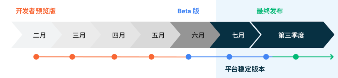 平台稳定性里程碑意味着现在所有面向应用的接口和行为都在 Android 11 中达到最终状态。这不仅包括最终 SDK 和 NDK API,还包括可能对应用造成影响的最终版系统行为和非 SDK 限制接口。因此从 Beta 2 起,您可以确信平台不会再出现更改,从而放心地发布兼容性更新。在此处详细了解发布时间表。- https://developer.android.google.cn/preview/overview#timeline