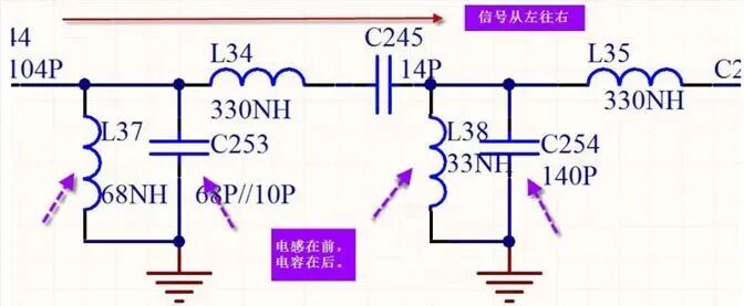 ① 射频链路布局注意事项根据原理图的先后顺序(输入到输出,包括每个元件的先后位置和元件与元件之间的间距都有讲究的。有的元件与元件之间距离不宜过大,比如π网。)进行布局,布局成“一”字形或者“L”形。具体如下图所示:
