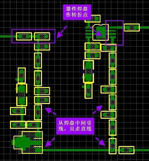 走线必须按照45°角拐弯或圆弧拐弯,这样可以减小高频信号的发射和相互之间的耦合,及减小信号反射。