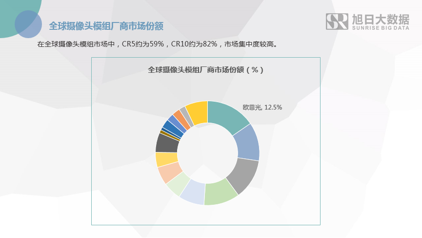 在全球摄像头模组市场中,CR5约为59%,CR10约为82%,市场集中度较高。