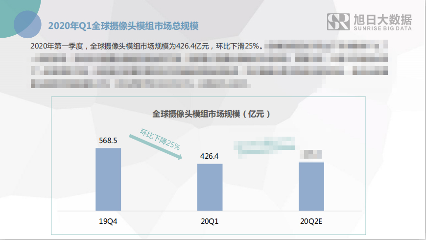 2020年第一季度,全球摄像头模组市场规模环比下滑25%。