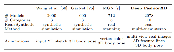 表3 Deep Fashion3D数据集与其他数据集的对比