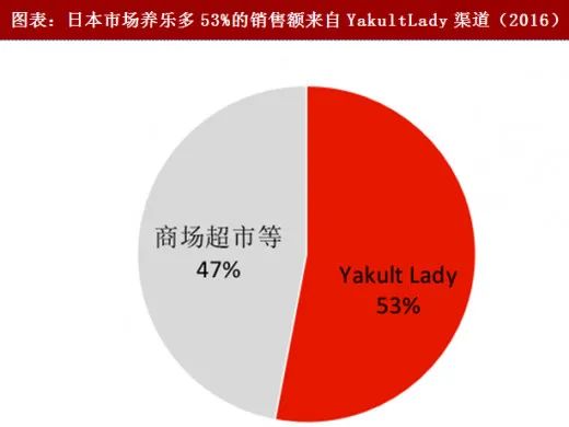 这种分销模式也不是没有遇过难题,最早在日本运行的时候,养乐多小姐需要挨家挨户敲门介绍产品,也经常吃“闭门羹”。但发展至今养乐多早已深入人心,2016 年日本市场的养乐多妈妈甚至撑起了 53% 的销售量,堪比商超渠道。