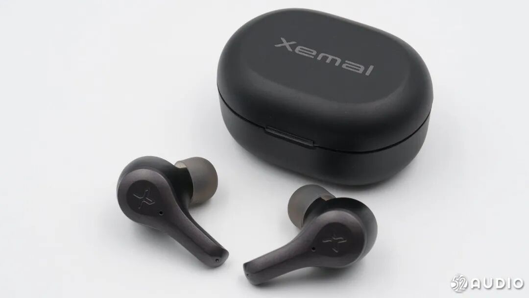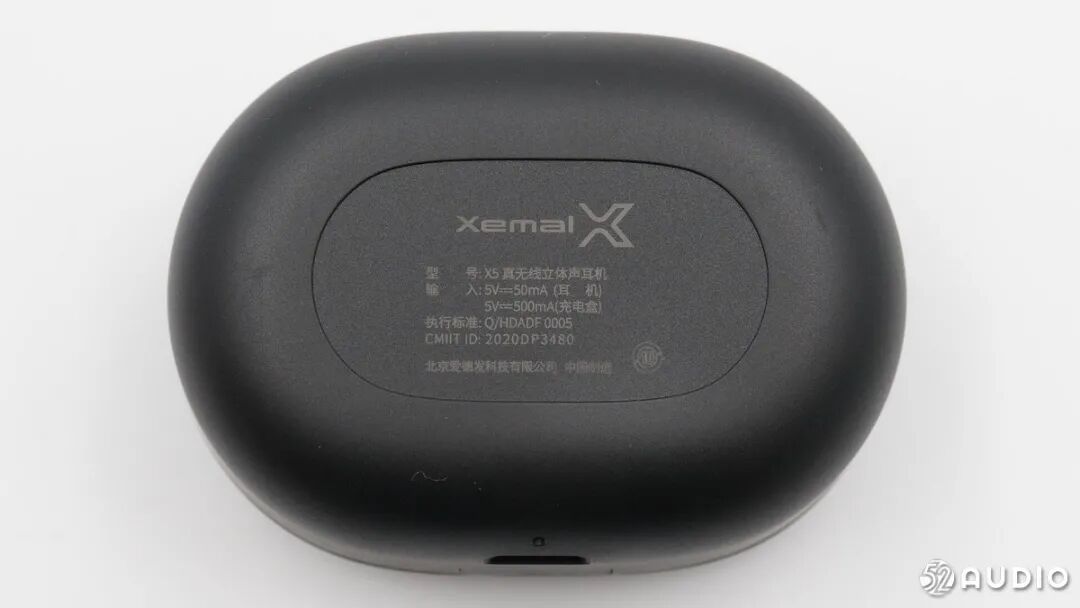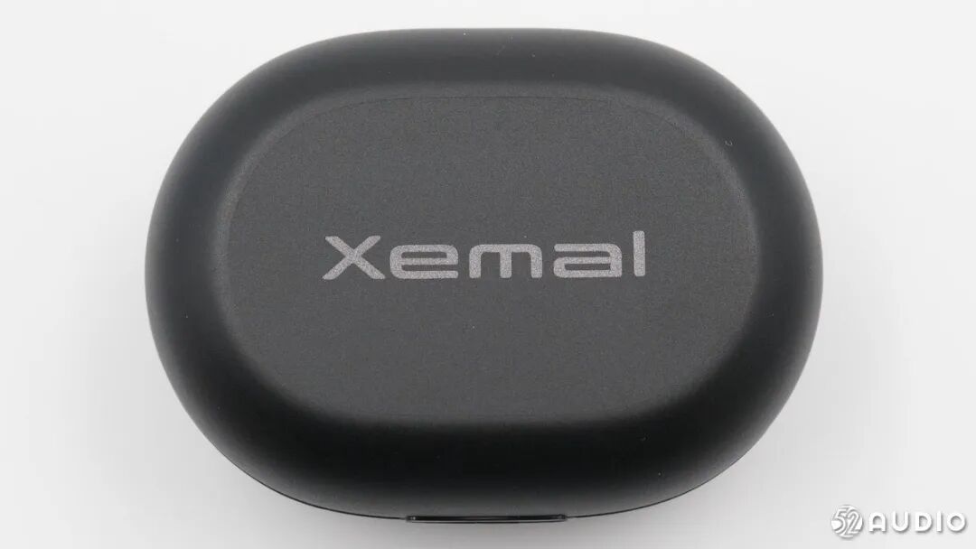 充电盒为磨砂手感,顶部是一个平面,有Xemal声迈的品牌名。
