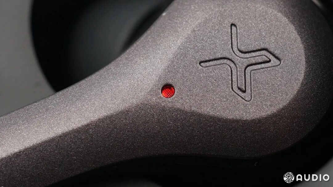 耳机外侧是金属灰色的盖板,Xemal声迈Logo区域支持触控,上面有一个指示灯开孔。