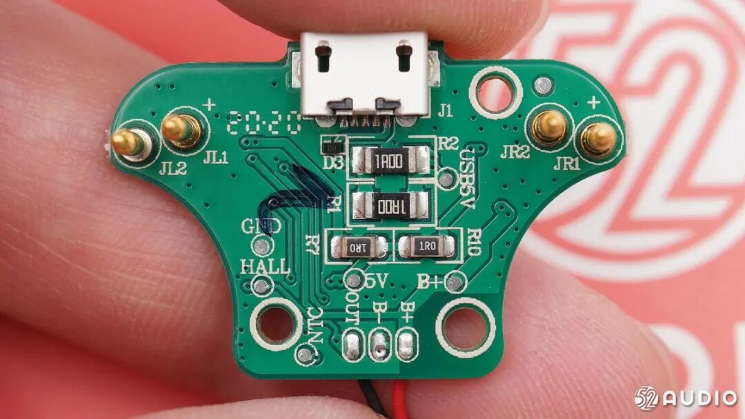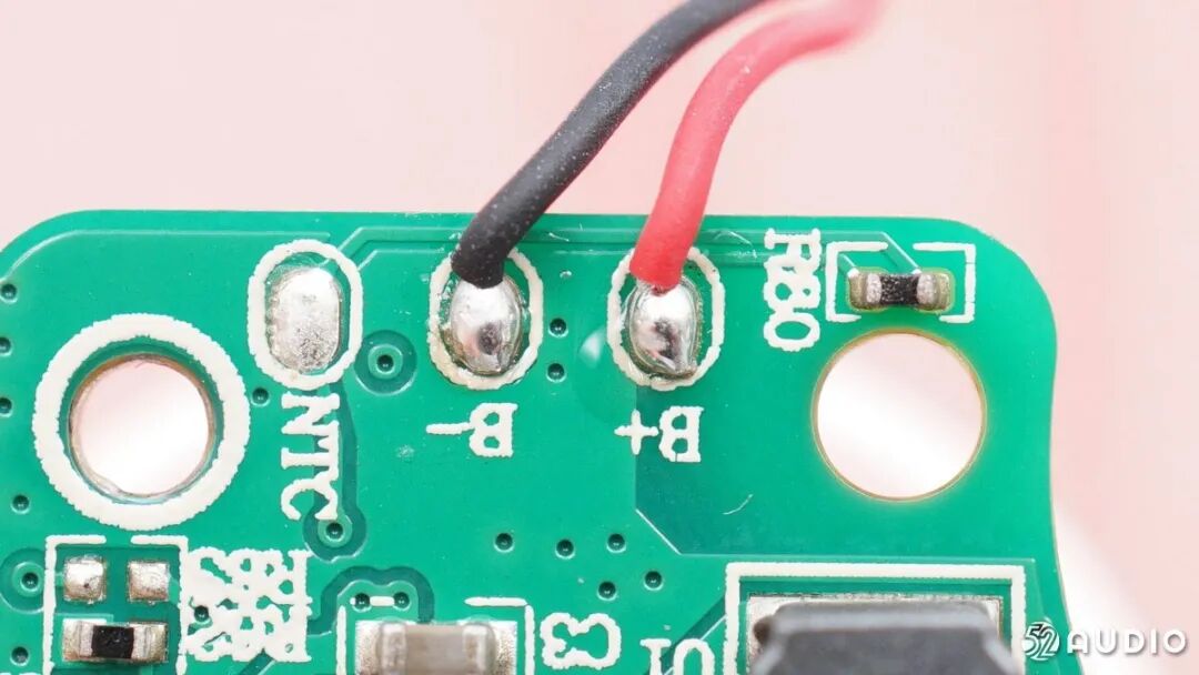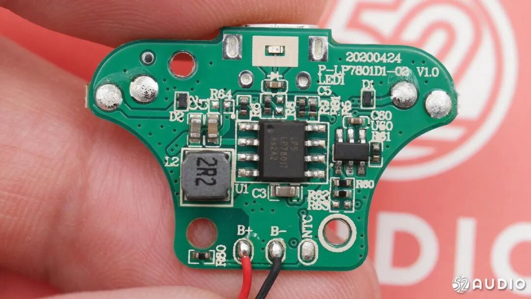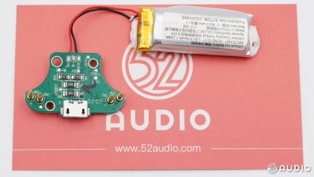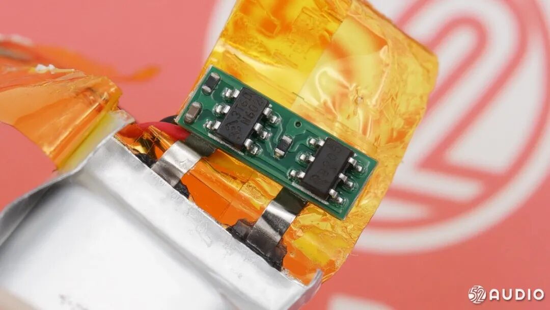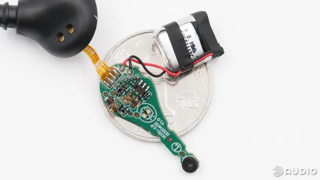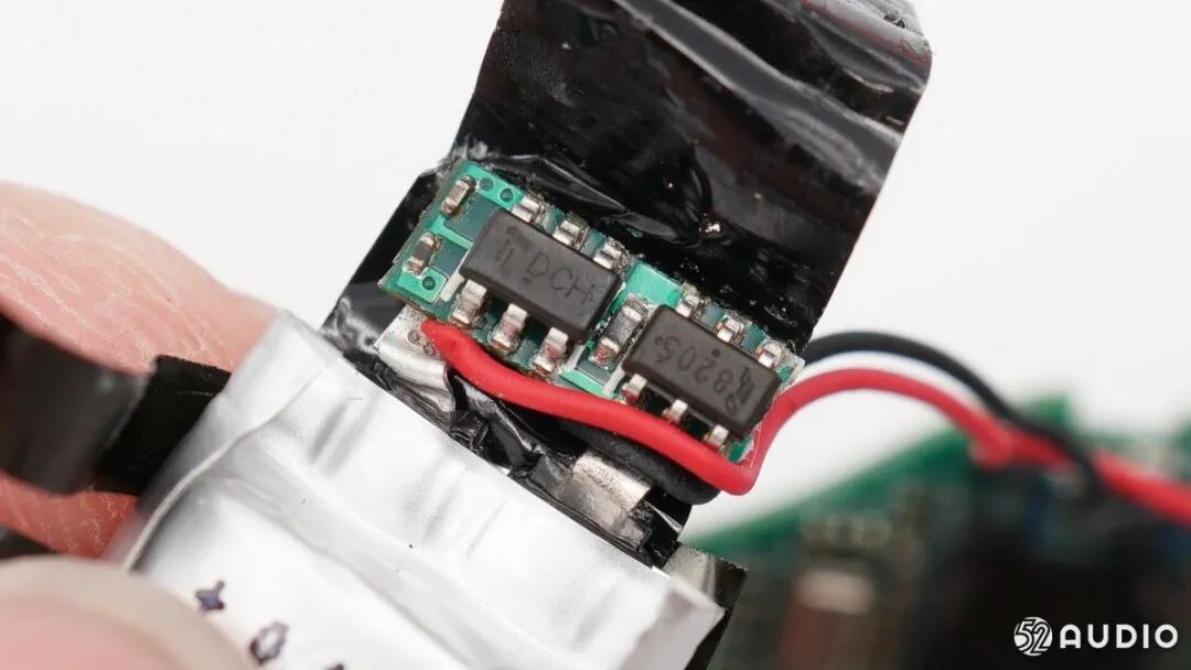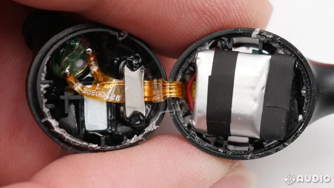 Xemal声迈X5耳机电路展示,条形主板,电池通过导线与主板相连。