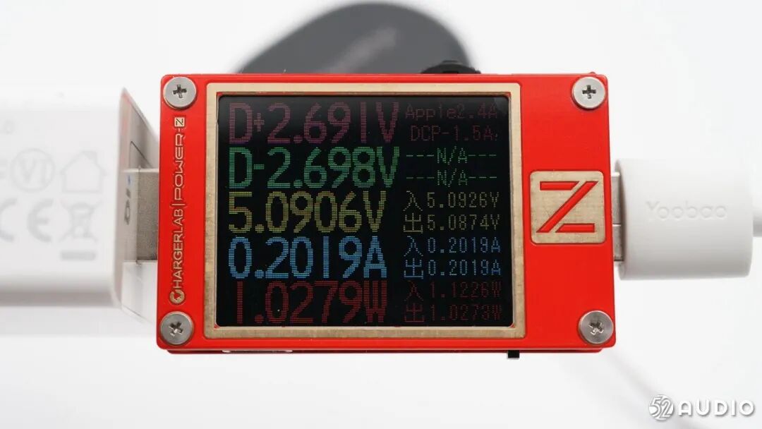 我爱音频网采用ChargerLAB POWER-Z KT001 便携式电源测试仪对Xemal声迈X5进行有线充电测试,充电功率约为1W,初始电量较高。