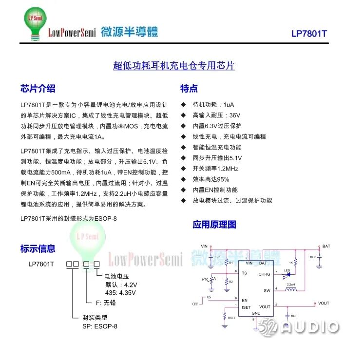 微源半导体,专业充电仓,超高耐压,超高效率,超低功耗,荣获IEC62368认证的充电仓专用芯片LP7801T,你值得拥有!