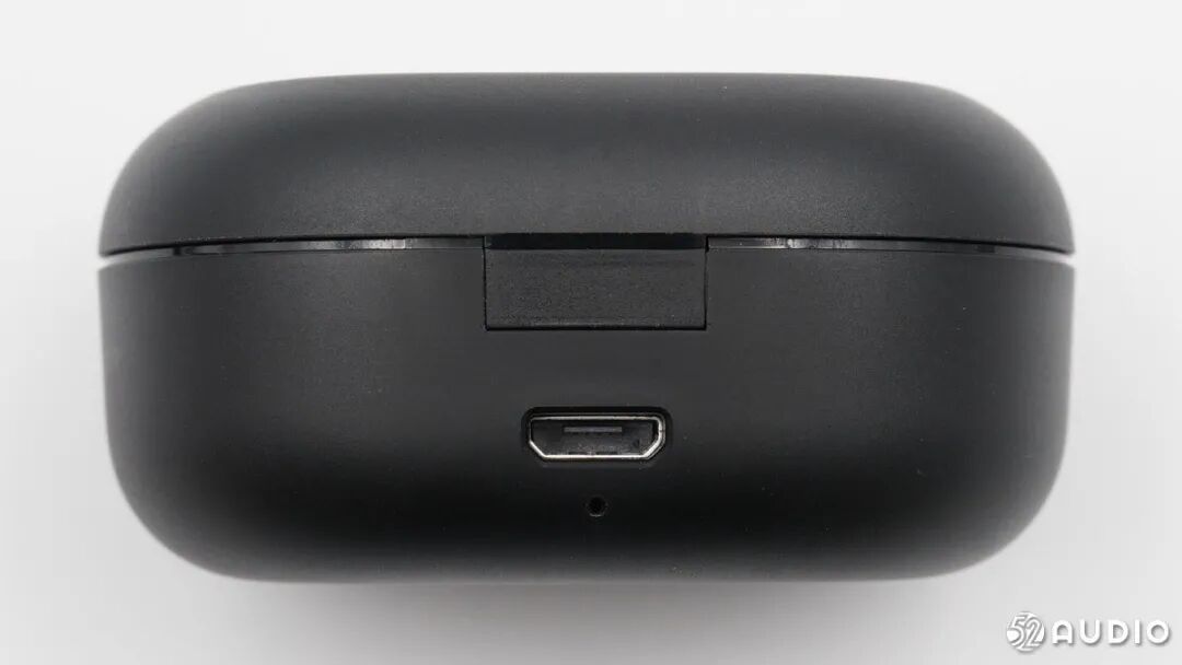 充电接口在充电盒背面,下面还有一个充电指示灯。