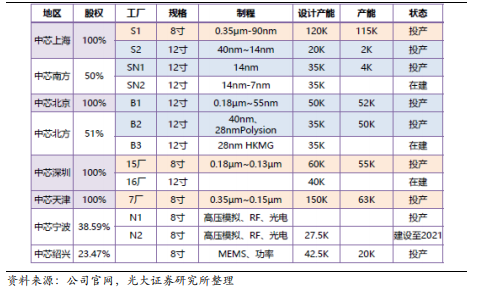 图:中芯国际产能情况,来源:光大证券