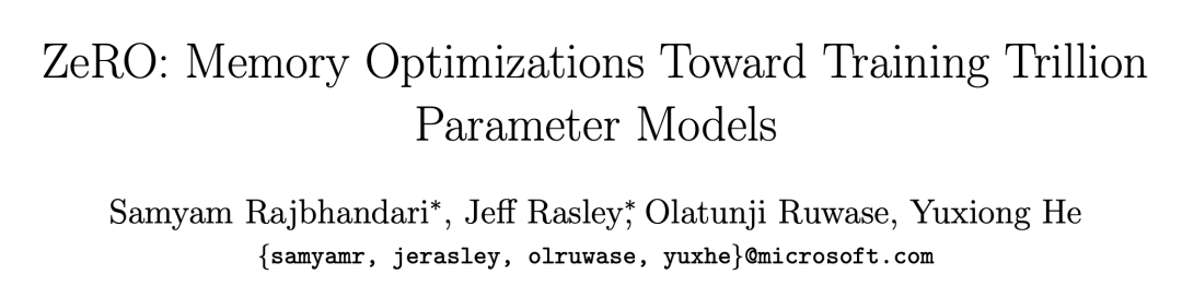 ZeRO论文地址:https://arxiv.org/abs/1910.02054