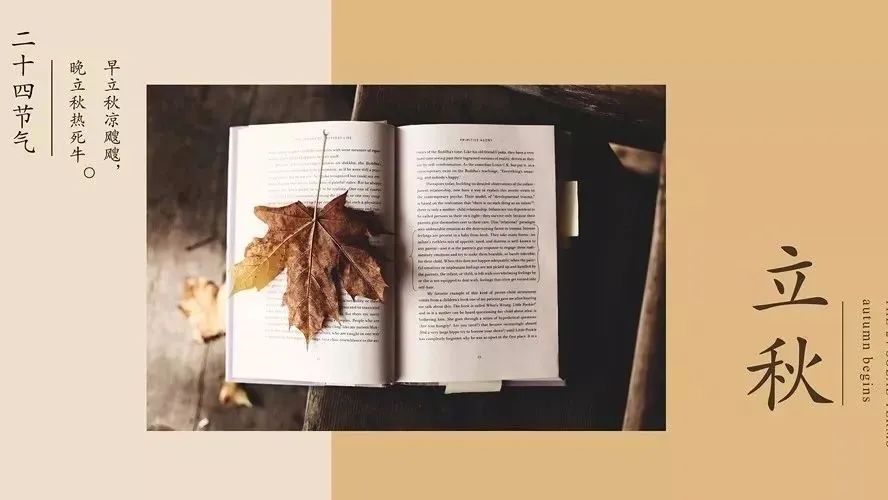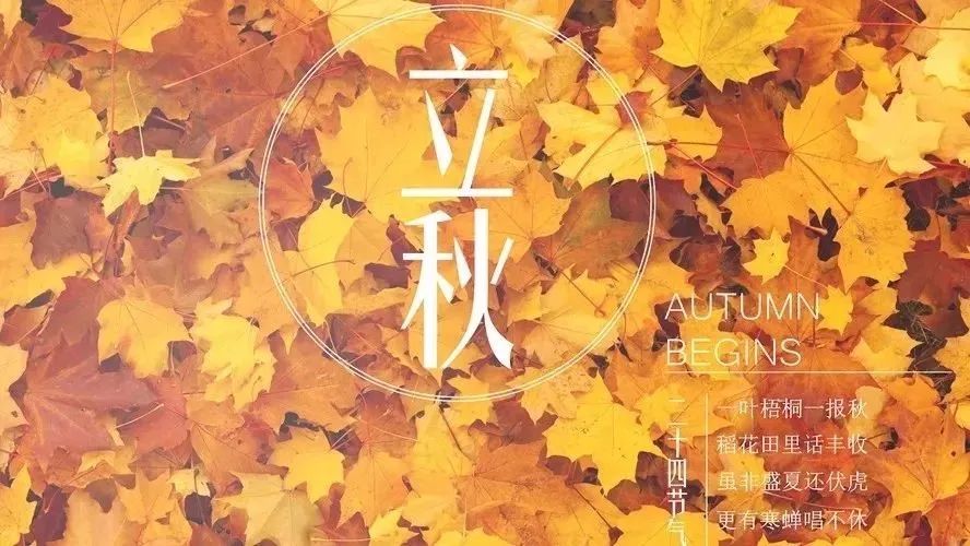 到了立秋,梧桐树开始落叶,因此有"落叶知秋"的成语。从文字角度来看,"秋"字由禾与火字组成,是禾谷成熟的意思。秋季是天气由热转凉,再由凉转寒的过渡性季节,每年8月7日或8日太阳到达黄经135度时为立秋。