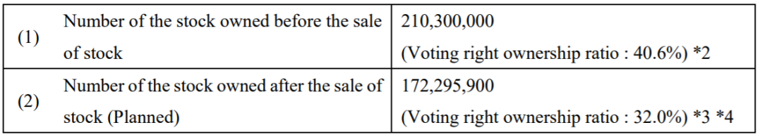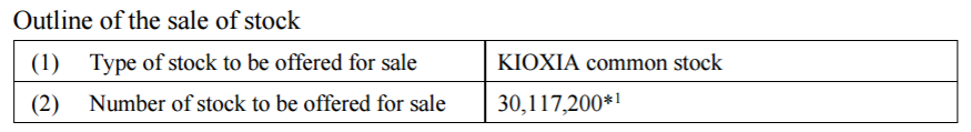 目前东芝的情况是,出售股票前持有的股票数量是2.103亿普通股,占比份额是40.6%,出售股票后持有的股票数量是1.723亿普通股,占比份额是32%,将出售3011.72万股。出售股票后所持的百分比是根据KIOXIA发行的股份总数计算,即5.391亿股(计划)。
