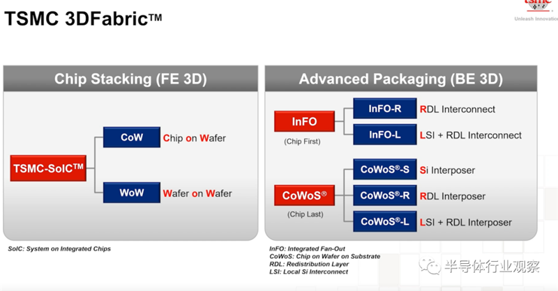 首先看SOIC方面,在这方面,台积电采用了自己研发的高性能技术,以最近的距离整合芯片,达到高频宽、高功效和紧密堆叠的效果。SOIC同时还能提供极具弹性的堆叠方式。如F2F、F2B,CoW、WoW、LoL以及LOM等等,这些堆叠方式不但能够满足广泛的应用需求,还能达到长期的技术演进目标。