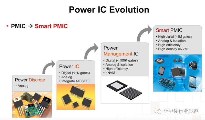 至于Power IC方面 ,虽然这是最保守的产业,但新的应用也需要新的解决方案。台积电专注于Smart PMIC 。该解决方案具有高质量数字(>1M gates),适用于模拟&隔离,高效率以及高密度 eNVM等优势。