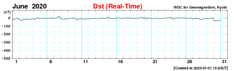 2020年6月全球的Dst指数(来源:国际地磁数据中心)