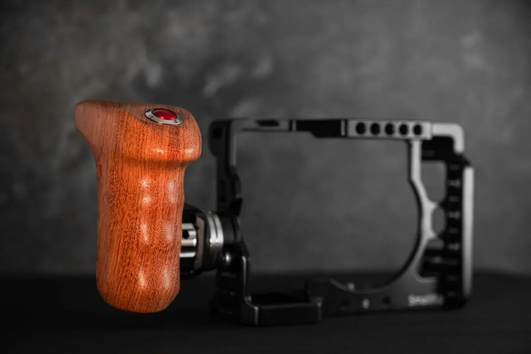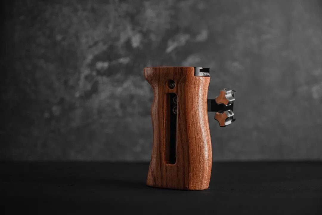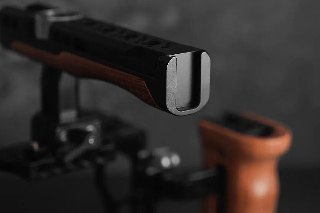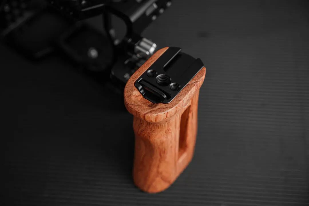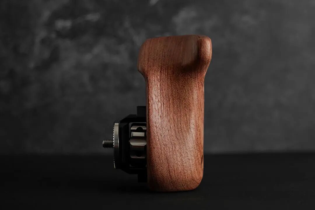 有了兔笼之后,相机的握持感或多或少会有一定的影响。所以为了更舒适的体验,我加增的第一个配件就是斯莫格的这款通用滑槽木质侧手柄。
