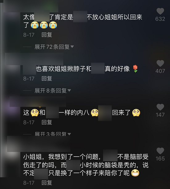比如,视频中的内容会说宠物的某种生活习惯一样,竟然真的就会有粉丝真情实感地相信 XX 回来了: